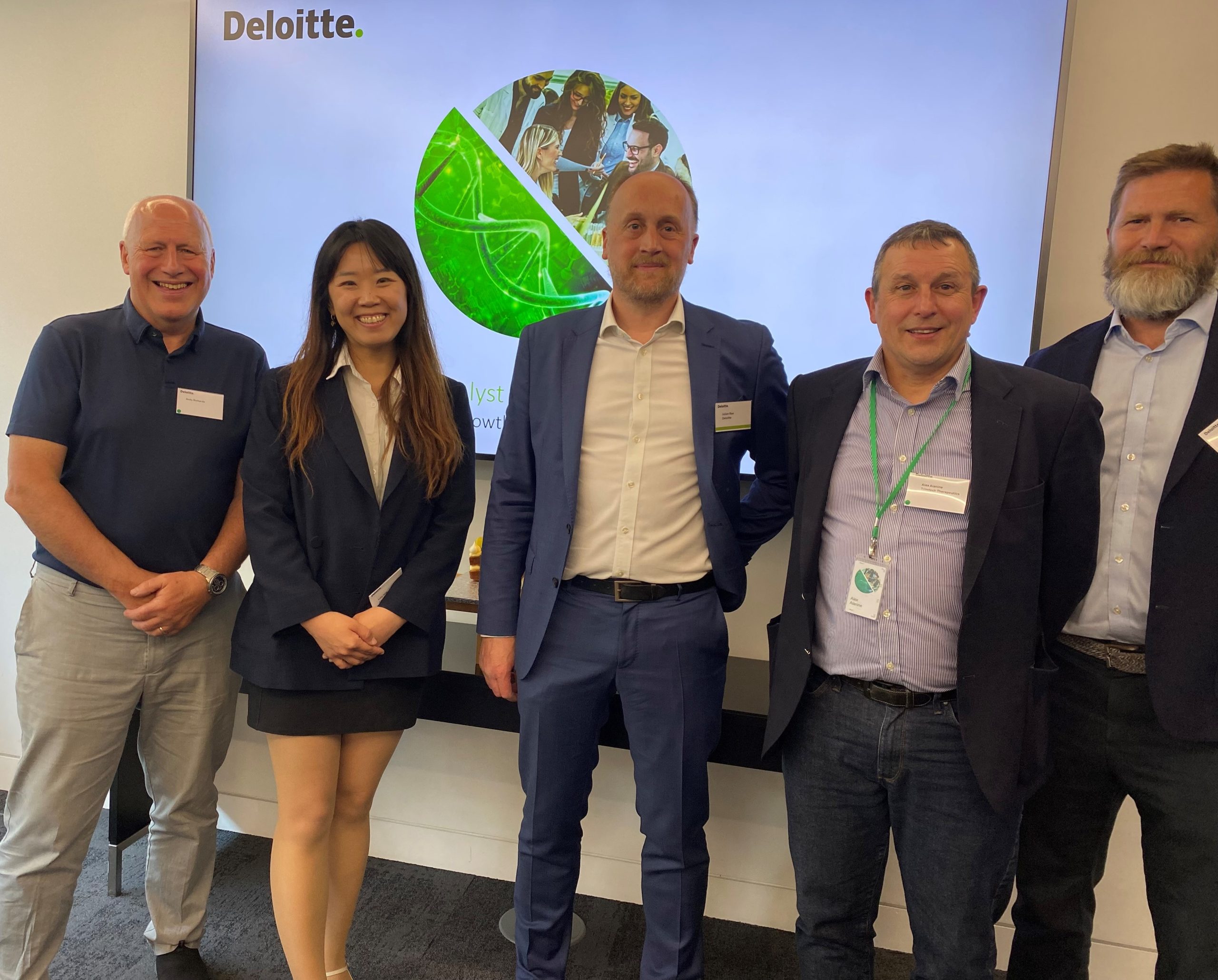 Photo (l-r): Andy Richards, Lucy Jung with Deloitte Cambridge office senior partner, Julian Rae; Alex Alanine and Deloitte life sciences & healthcare partner, Rob Hankey.